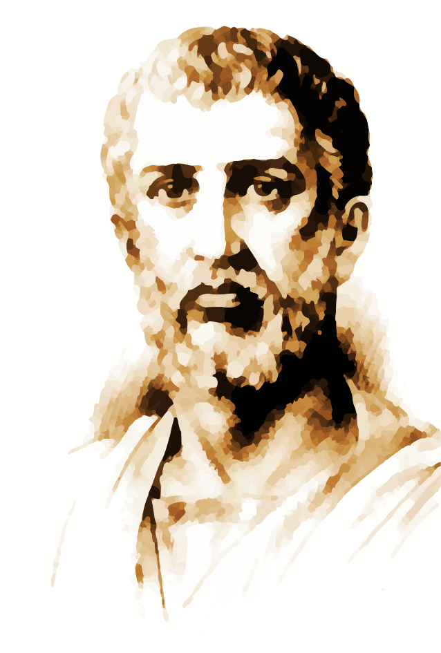 This is a black and white drawing of an older man with a beard. He appears to be wearing a toga, which suggests that he might be a Roman orator. The drawing has a vintage feel to it, giving the impression that it was created some time ago. The man's facial expression is serious, and his eyes are focused on something in the distance. This artistic representation of an older man with a beard and a toga creates a sense of history and importance, as orators were often considered important figures in ancient societies.
