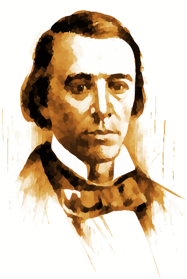 This is a black and white portrait of a man with a bow tie. He appears to be an older gentleman, possibly a famous orator. The portrait has been drawn in a vintage style, giving it a classic feel. The man's attire includes a suit and tie, which adds to the sophistication of his appearance. The overall composition of the image is well-executed, with the subject being the main focus while still maintaining an artistic touch through the use of black and white colors.