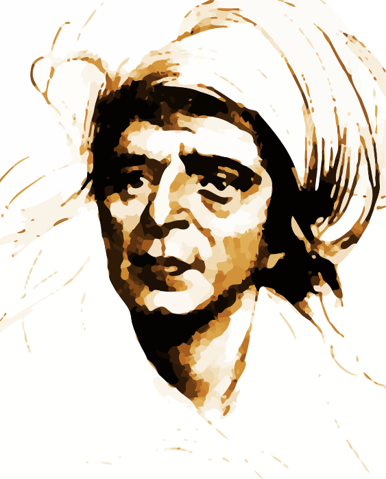 This is a black and white drawing of an older man with a beard. He appears to be looking downward, possibly contemplating something or deep in thought. The drawing has a vintage feel to it, giving the impression that it was created some time ago. The man's facial expression and posture suggest that he is a serious individual who might have been involved in important discussions or events throughout his life.