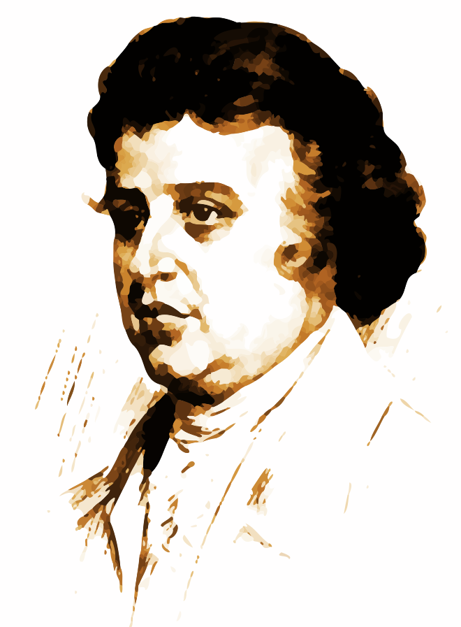 This is a drawing of an older man with a beard and mustache, wearing a white shirt. He appears to be looking at the viewer with a serious expression on his face. The drawing has been done in black and white, giving it a classic feel. The man's attire suggests that he might have been a prominent figure or an important speaker during his time.