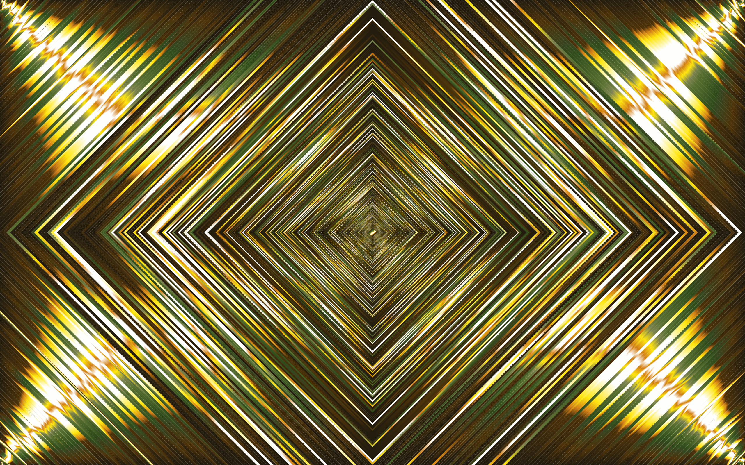 This features a large, intricate pattern made up of many small squares. These squares are arranged in a way that creates an illusion of depth and complexity. The pattern is predominantly yellow, with some green elements visible as well. The overall effect is visually striking and captivating, drawing the viewer's attention to the details within the design.