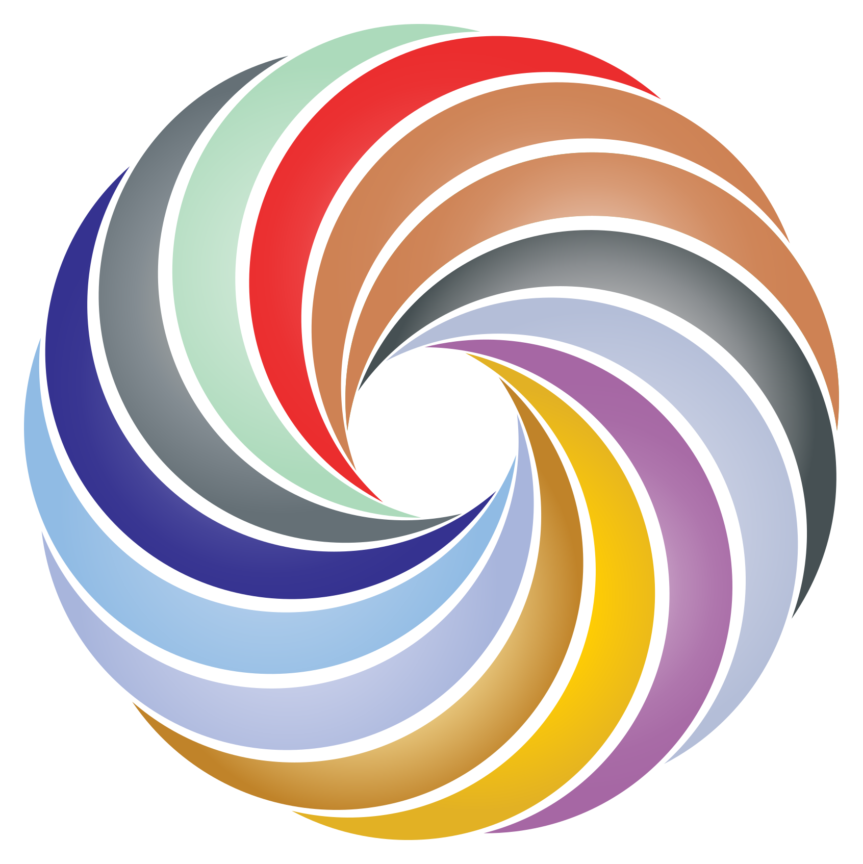 This features a colorful, circular design with various colors such as red, blue, yellow, green, and purple. These colors are arranged in a spiral pattern, creating an eye-catching visual effect. The circle is divided into segments, each containing different shades of the primary colors. This unique design could be used for decorative purposes or to create a vibrant background for various applications.
