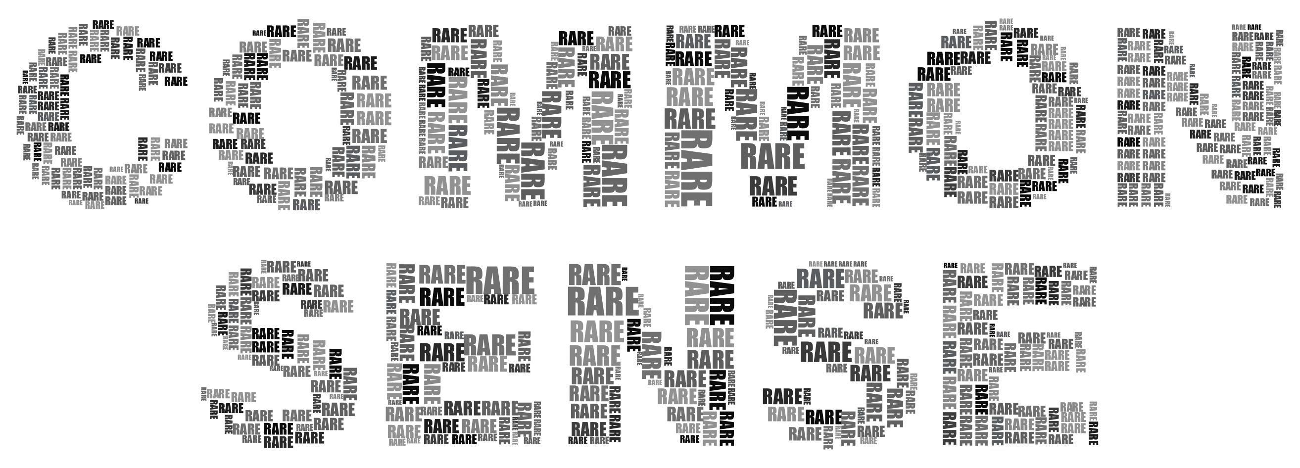 This is a close-up of the word "Common Sense" written in black and white. The letters are arranged in a grid pattern, with each letter taking up a square on the page. The word appears to be made from various pieces of paper or cut outs, giving it an artistic and unique appearance. The overall effect is that of a collage or mosaic, creating a visually interesting composition.