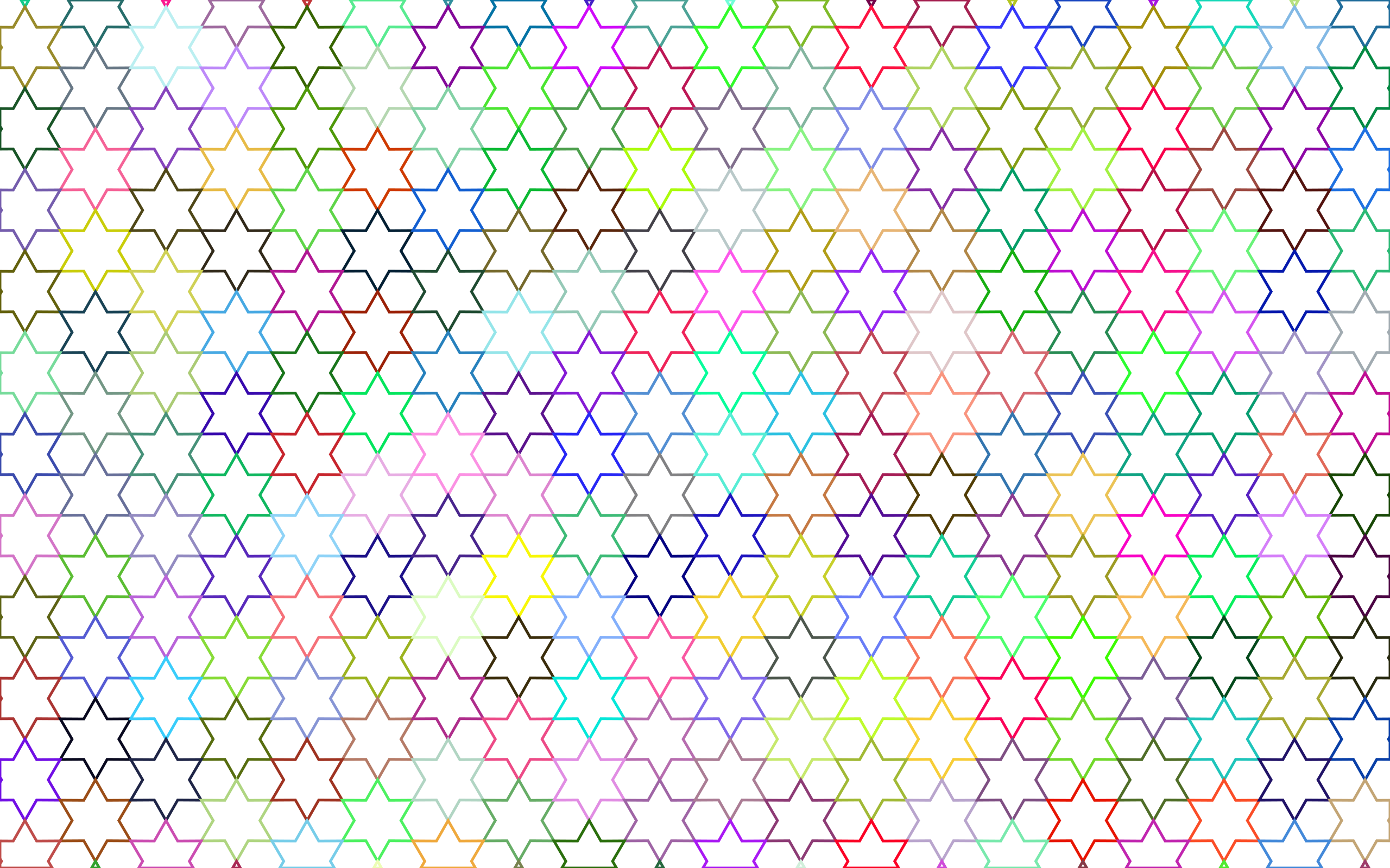 This features a large, colorful pattern of hexagons and stars. These geometric shapes are arranged in various sizes and colors, creating an eye-catching design. The pattern is reminiscent of a honeycomb or a prismatic structure, with the hexagons forming the base and the stars adding visual interest to the overall composition. The vibrant colors used in this design make it stand out as a unique and captivating piece of artwork.