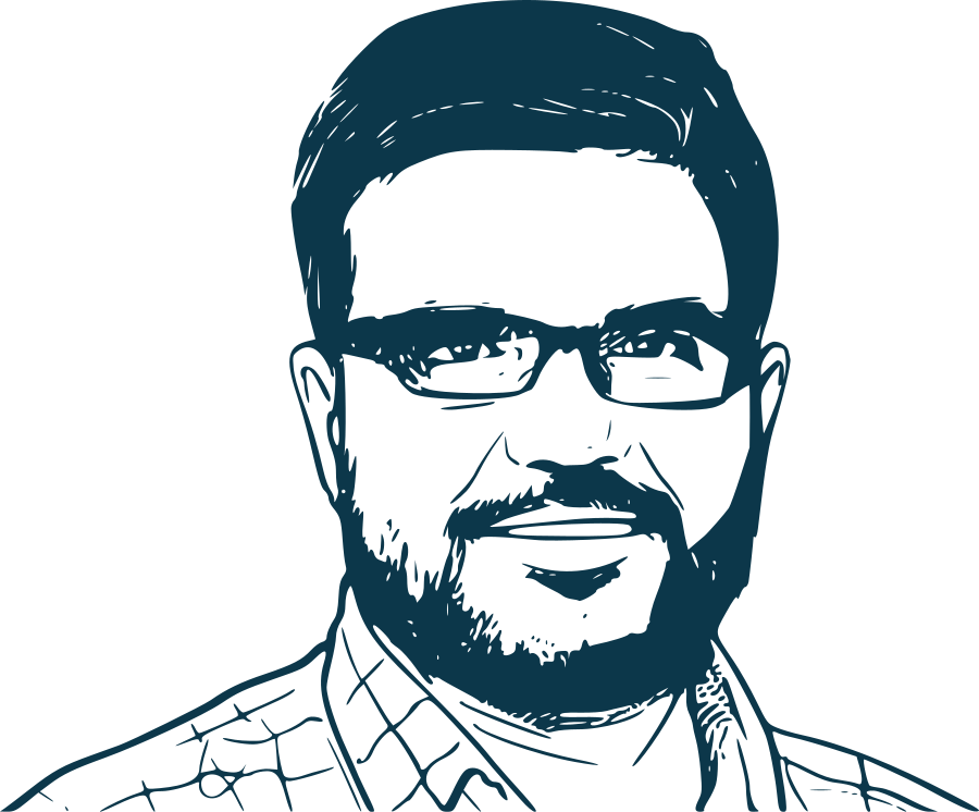 This features a man wearing glasses and a plaid shirt. He has a beard and is smiling for the camera, giving off a friendly vibe. His attire consists of a collared shirt with a tie, adding a touch of formality to his appearance. The man's facial expression conveys warmth and approachability, making him appear welcoming and approachable.