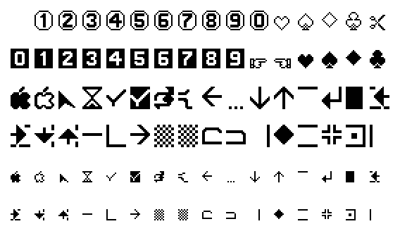 This displays a collection of various symbols and characters, including numbers, letters, and other unique shapes. These symbols are arranged in rows, creating an organized appearance. Some of the symbols include numbers such as 1, 2, 3, and 4, along with letters like A, B, C, D, E, F, G, H, I, J, K, L, M, N, O, P, Q, R, S, T, U, V, W, X, Y, Z. Additionally, there are other symbols such as a heart and a star, which add to the diversity of characters in the image. The arrangement of these symbols creates an interesting visual display that could be used for various purposes like designing graphics or creating unique text styles.
