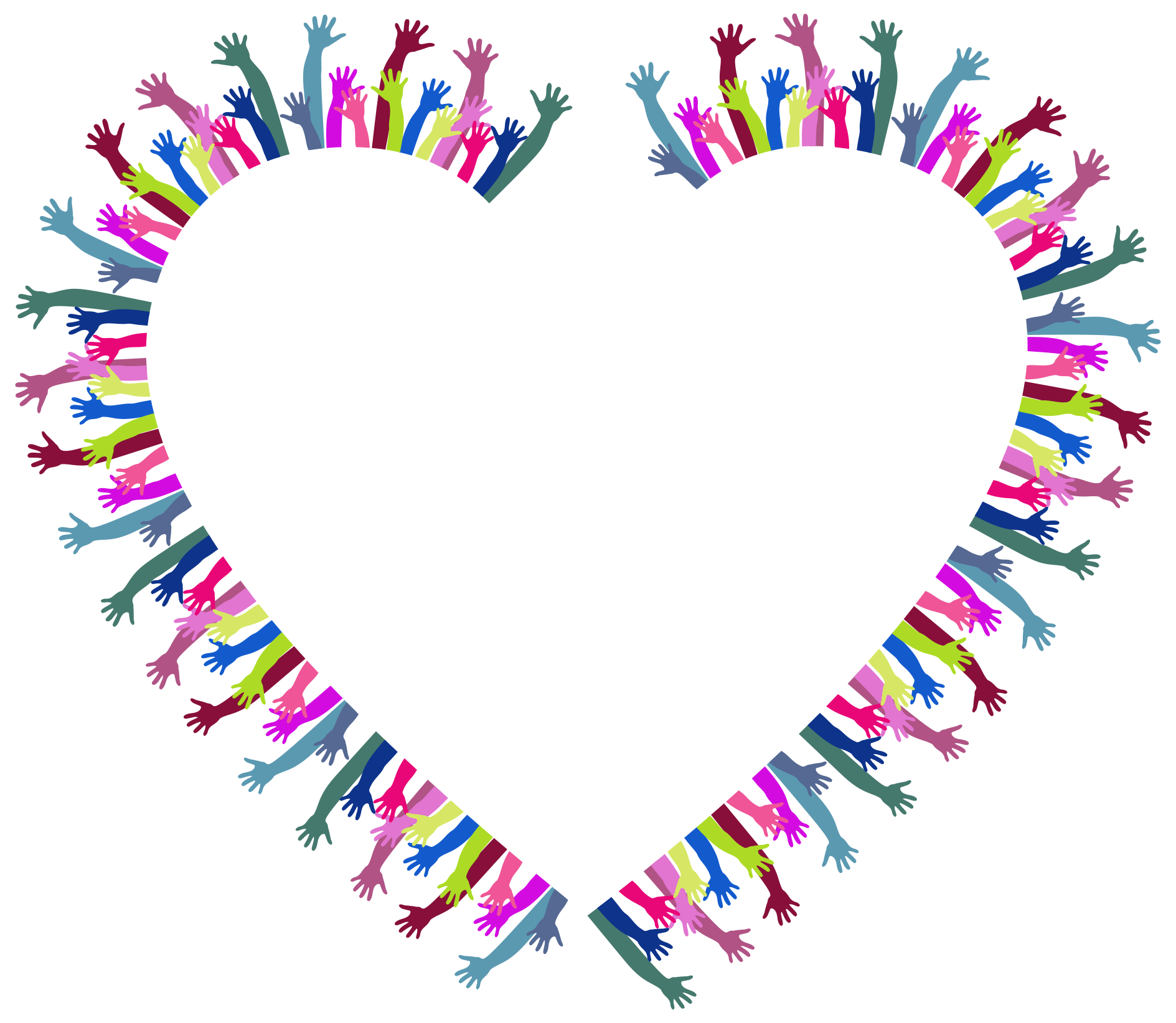 This features a large heart made up of many hands, all reaching out towards the center. These hands are in various colors and sizes, creating an eye-catching visual effect. The hearts are arranged in such a way that they form a circle around the central point of the heart, giving it a three-dimensional appearance. This unique design makes for an interesting and creative representation of love or affection.
