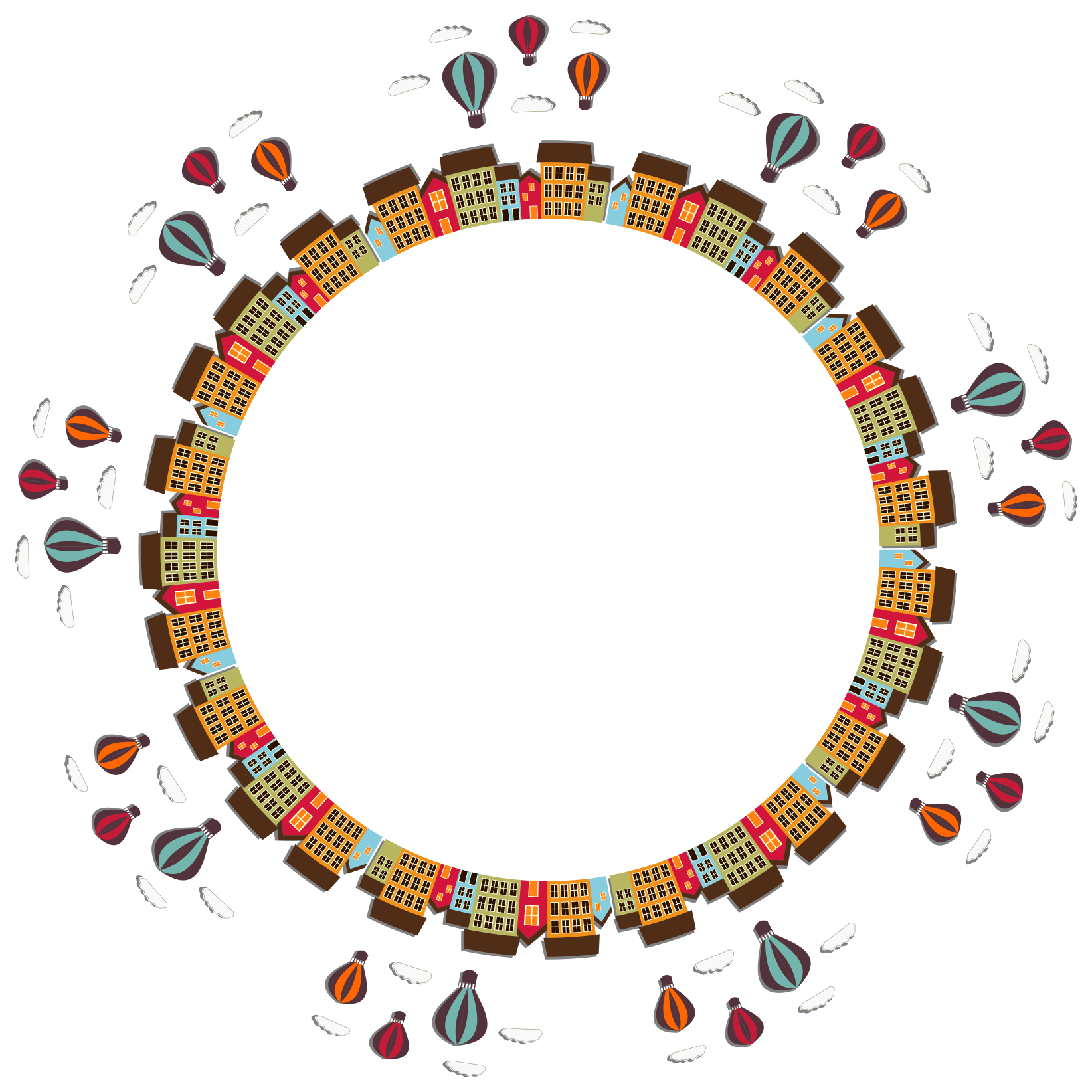 Tags: architecture, border, building, cityscape, frame, hot air balloons, house, landscape, skyline, urban, art, decoration, drawing, painting, colorful, circular