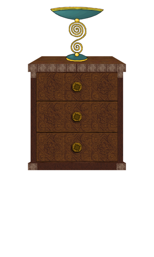 This features a brown wooden dresser with a drawer and a decorative vase on top. The vase is placed in the center of the dresser, adding an elegant touch to the overall design. The dresser itself has a unique patterned texture that makes it stand out as a focal point in the room. This combination of furniture and decoration creates a visually appealing scene that showcases both functionality and style.