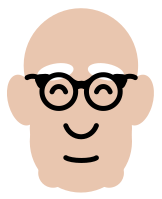 This features a cartoon drawing of an older man with glasses. He has a bald head and is wearing large, black-rimmed glasses that are placed on the top of his head. His eyes are closed in a playful manner, giving him a friendly appearance. The drawing captures the essence of a person who might be seen as quirky or eccentric due to their unique style and choice of accessories.