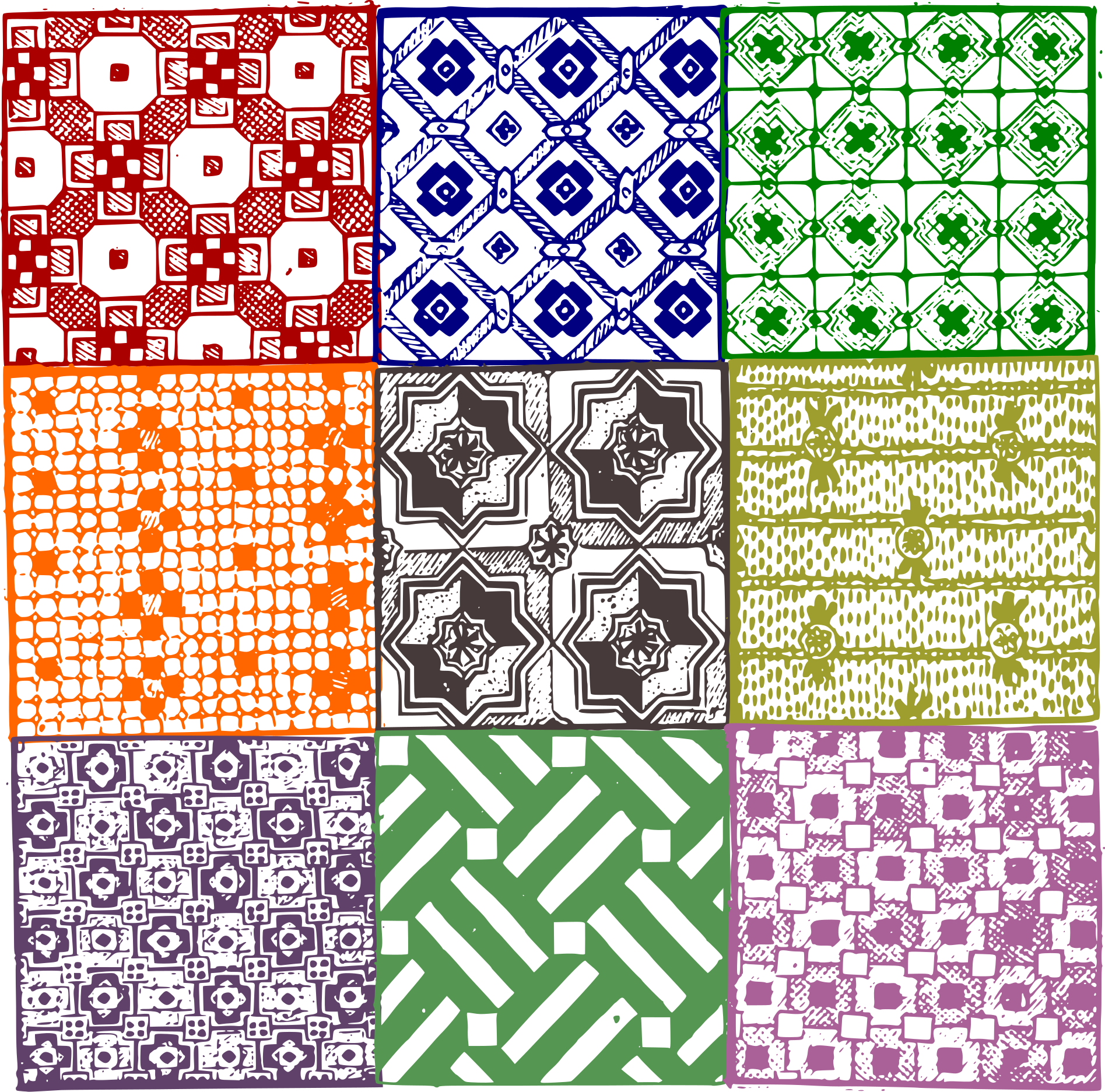 This features a colorful display of various patterns and designs, showcasing an array of different colors. There are six distinct sections in the image, each containing a unique pattern or design. These patterns include geometric shapes such as diamonds, squares, and circles, as well as more intricate designs like swirls and floral motifs. The color palette is diverse, with shades ranging from bright hues to muted tones, creating an eye-catching visual effect. Overall, the image presents a captivating collection of patterns that can be appreciated for their artistic qualities or used as inspiration in various creative projects.