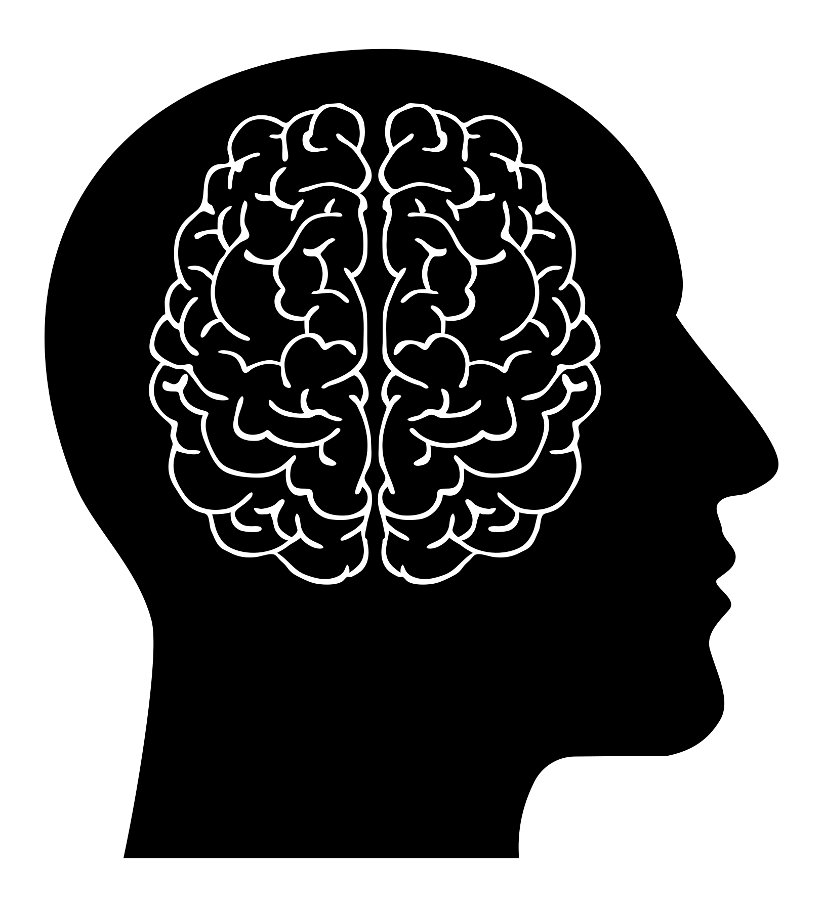 This features a black and white silhouette of a human head, with the main focus being on the brain. The brain is depicted in a detailed manner, showcasing its intricate structure. The rest of the head is not visible, as it is cut off from the frame. This artistic representation of the brain highlights its importance and complexity within the human body.