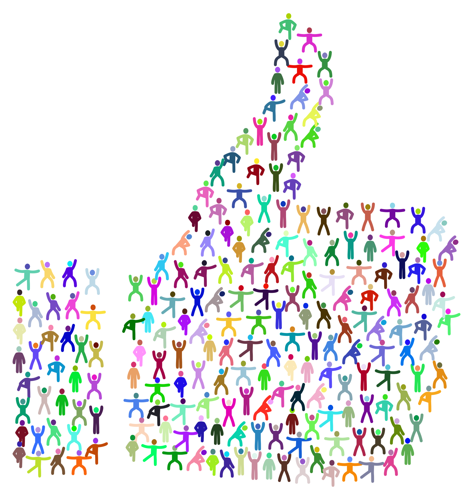 This features a large group of people standing together, all with their arms raised in the air. There are at least 15 individuals visible in the scene, each one holding up their hands and forming a crowd. The people appear to be diverse in terms of size and positioning, creating an interesting visual effect. The overall atmosphere suggests unity and togetherness among these individuals.
