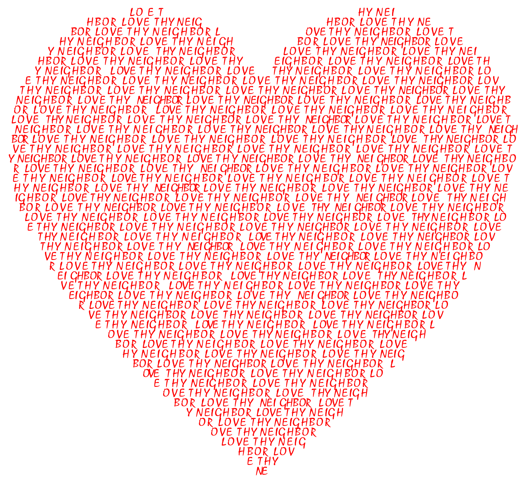 This features a large, red heart made up of many small dots. Each dot is filled with the word "love," creating an intricate and visually appealing design. The heart is composed of numerous individual letters that spell out the word "love" in various arrangements throughout the heart shape. This unique display of love can be seen as a creative way to express affection or appreciation for someone special.
