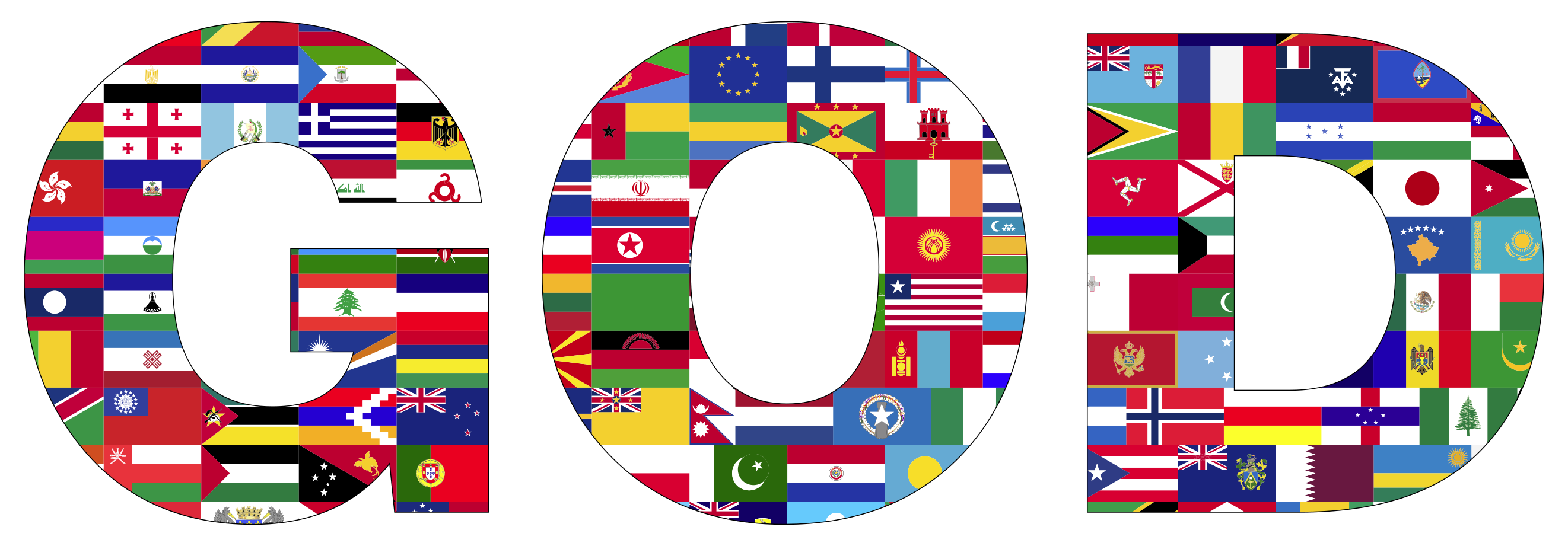 This features a large, colorful display of flags from various countries. These flags are arranged in such a way that they spell out the word "God" using different national symbols. There is an abundance of flags, with some placed higher than others and others positioned closer to the ground. This visually striking arrangement creates a sense of unity among these diverse nations while highlighting their shared belief in God.