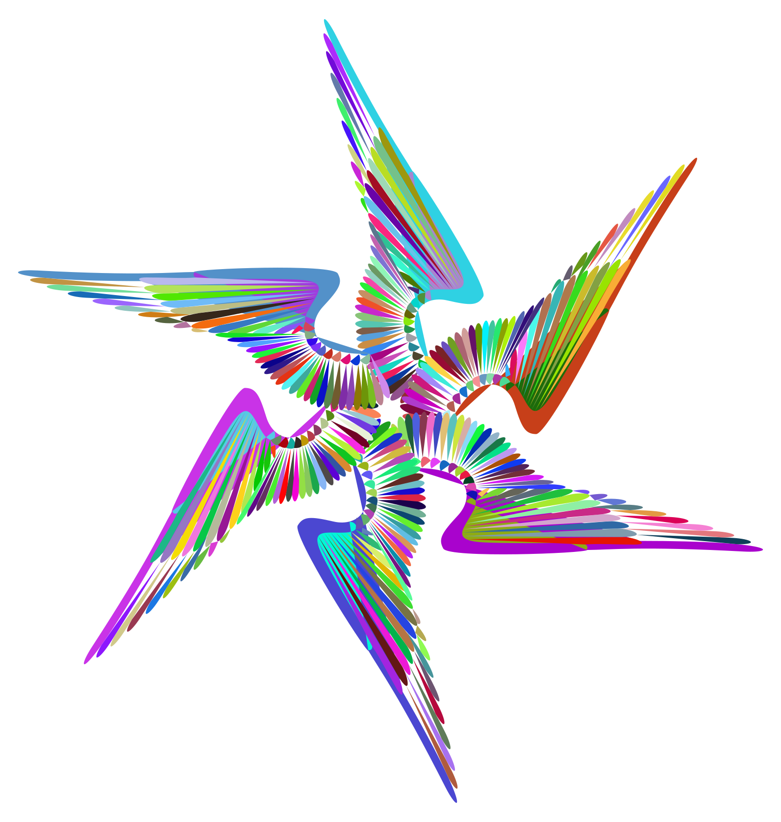 This features a colorful, abstract design that resembles a star. It is composed of various colors and shapes, creating an intricate pattern. The star has multiple points or wings extending outwards from its center, giving it a unique and eye-catching appearance. This artistic piece could be used as a decorative element in a room or displayed on clothing or other accessories to showcase the creativity of the artist who designed it.