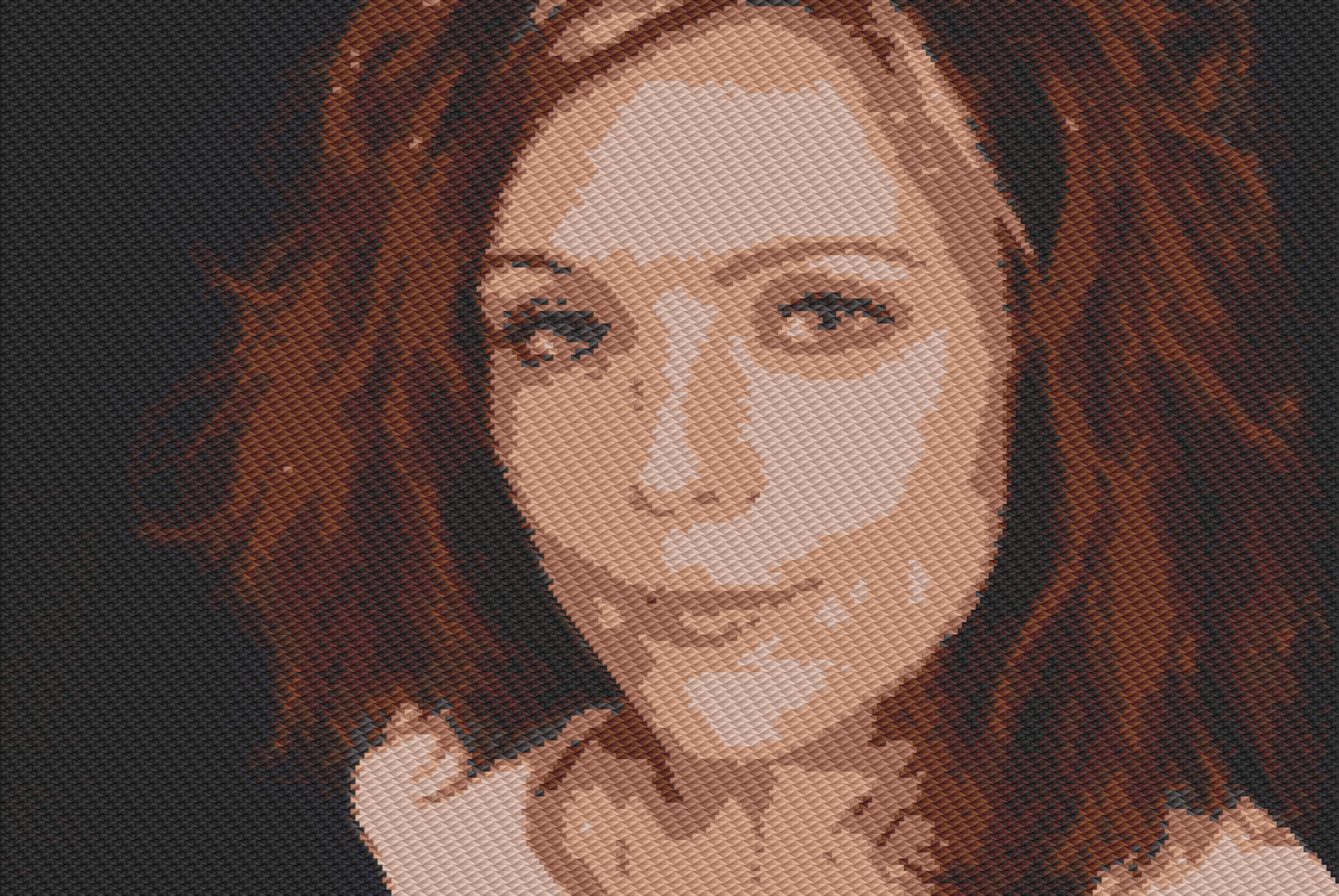 This features a woman with red hair and brown eyes, wearing a white shirt. She has a smiling expression on her face as she poses for the camera. Her hair is styled in a short cut, giving her a unique look. The photo appears to be a close-up of her face, emphasizing her features and making it an interesting portrait.