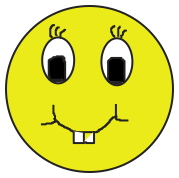 This features a yellow smiley face with black eyes and a mouth. The face is round, and the eyes are positioned in the middle of the face. The mouth has two teeth visible, one on each side. This cheerful character appears to be the main focus of the image, making it an appealing and positive representation of happiness.