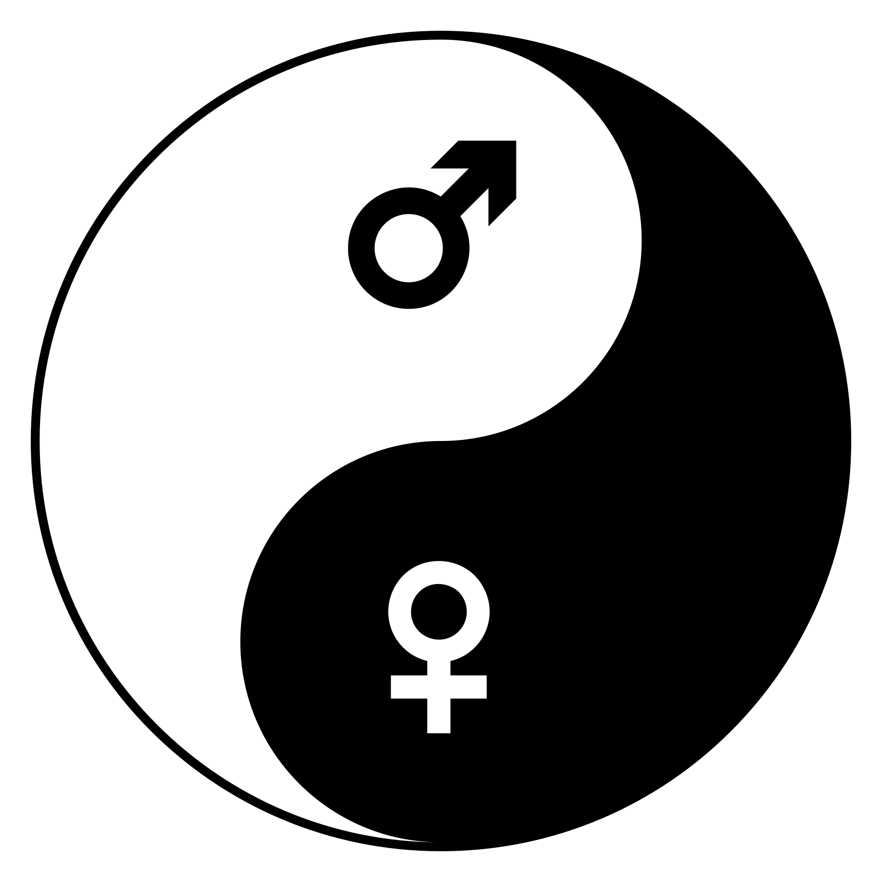 This features a black and white circle with two symbols in the center. One of the symbols is a yin-yang, which represents balance and harmony between opposing forces. The other symbol is a male and female sign, representing the complementary nature of the sexes. These symbols are often used to represent the interconnectedness of all things or the idea that everything has its own unique place in the world. The circle itself appears to be white with black accents, giving it a clean and modern look.
