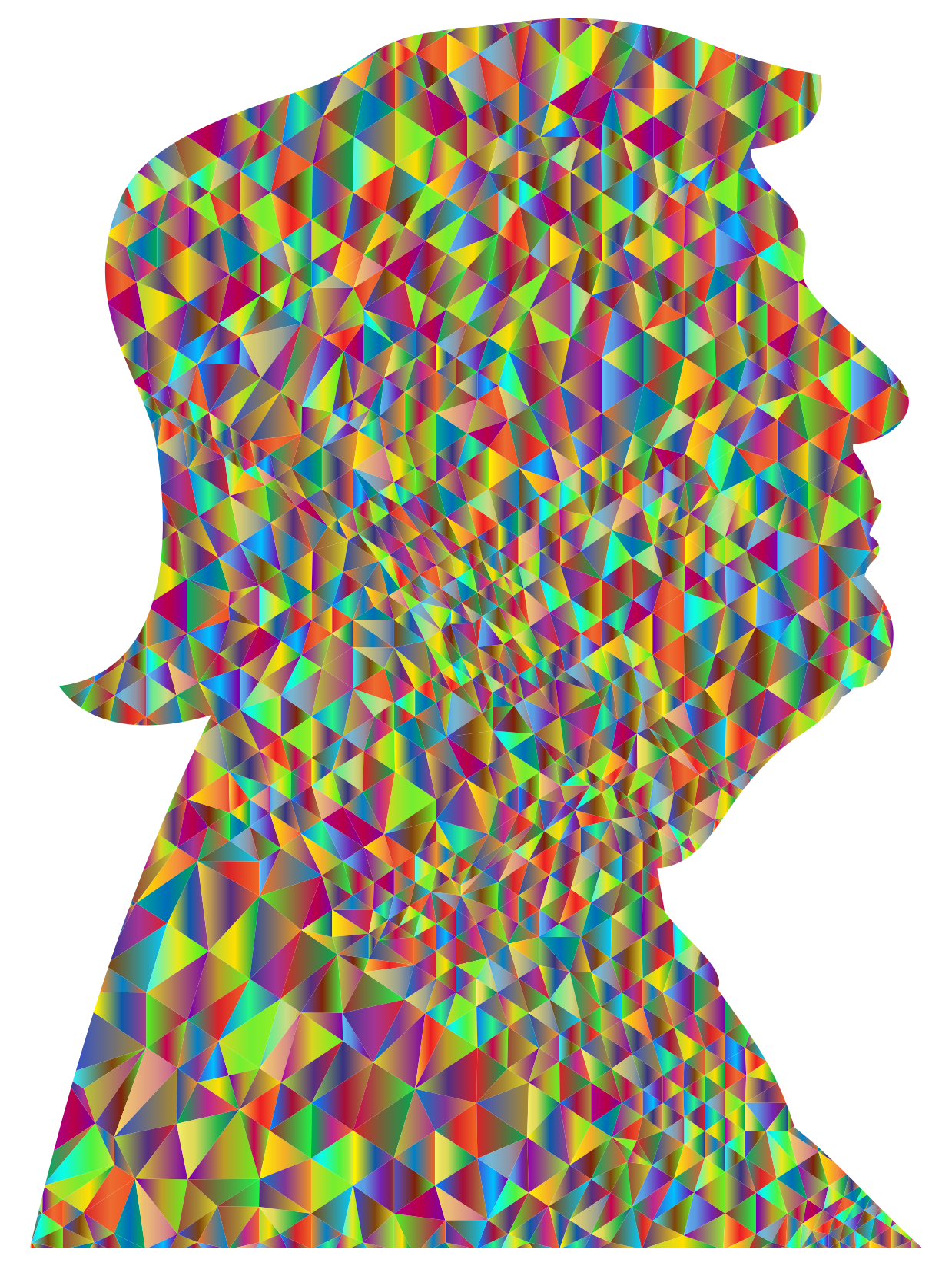 This features a colorful, abstract portrait of Donald Trump. The picture is composed of various colored shapes and patterns that make up the president's face. These colors include red, yellow, blue, green, purple, orange, and pink. The portrait captures the essence of the president in an artistic manner, using a combination of different shapes to create his distinctive features.