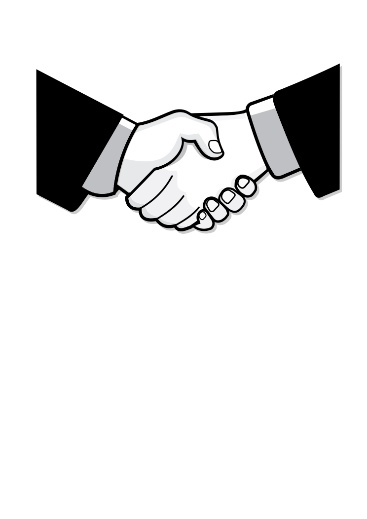This features a handshake between two people, with their hands clasped together. This handshake is depicted in black and white, giving it an old-fashioned appearance. The two individuals are the main focus of the scene, as they engage in this friendly gesture. The handshake appears to be a symbolic representation of trust or agreement between the two people involved.