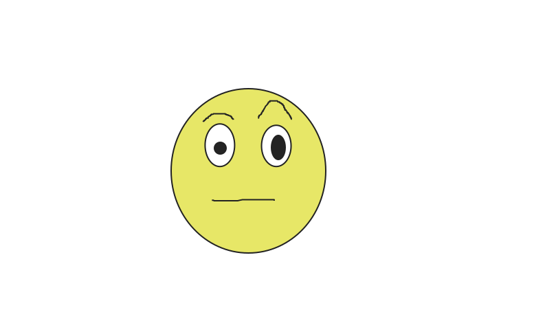 This features a yellow smiley face with two black dots for eyes, giving it an angry expression. It is placed against a white background that fills the entire frame of the picture. The smiley face appears to be the main focus of the image and stands out prominently against its plain backdrop.