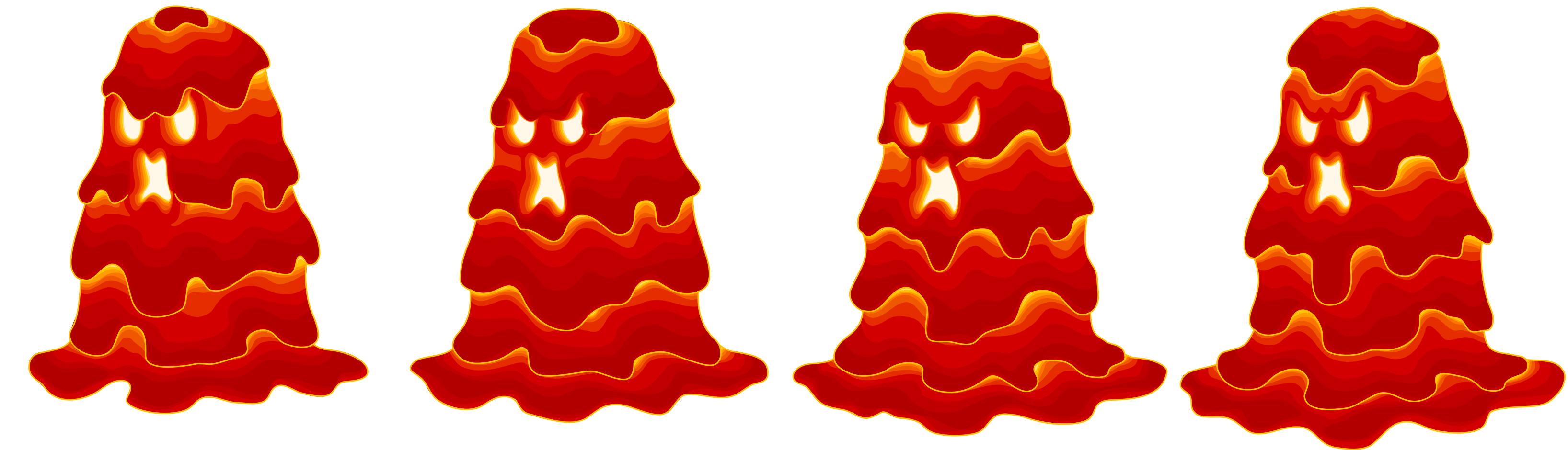 This features a series of four red candles, each with an angry expression. They are melting and appear to be in the process of breaking apart. The candles are placed on top of one another, creating a sense of depth and dimension within the scene. Their vibrant orange color contrasts beautifully against the white background, drawing attention to their unique appearance.