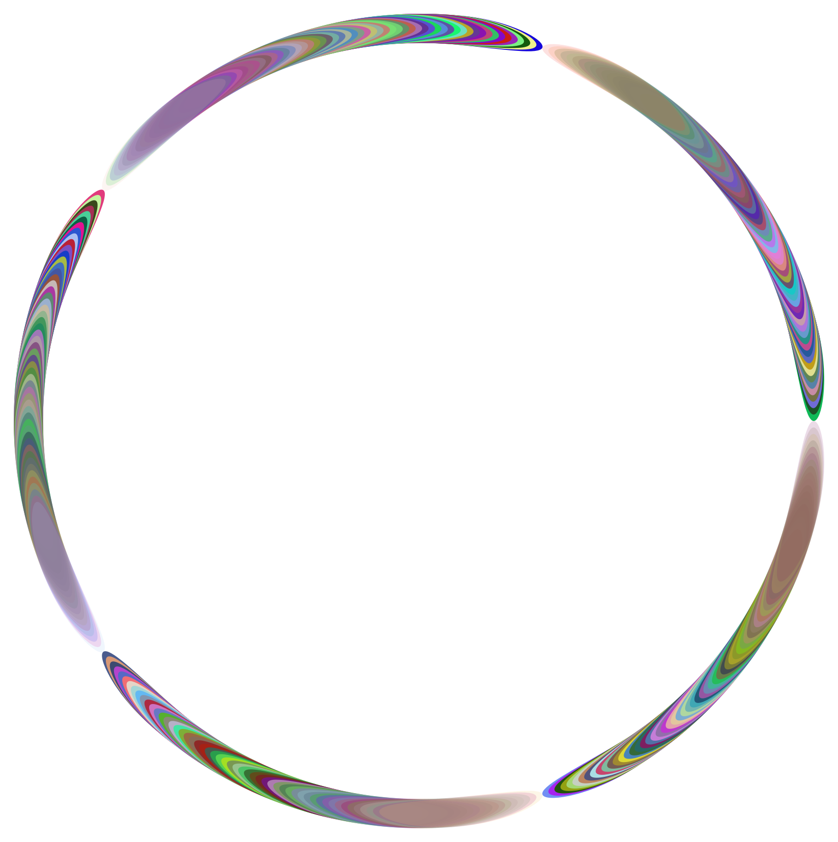 This features a large, colorful circle with a swirling pattern. The circle is made up of many smaller circles that are interconnected and create an intricate design. The colors in the circle are vibrant and varied, making it visually striking. The overall effect is one of depth and complexity, as the individual circles within the larger circle create a sense of movement and dynamism.