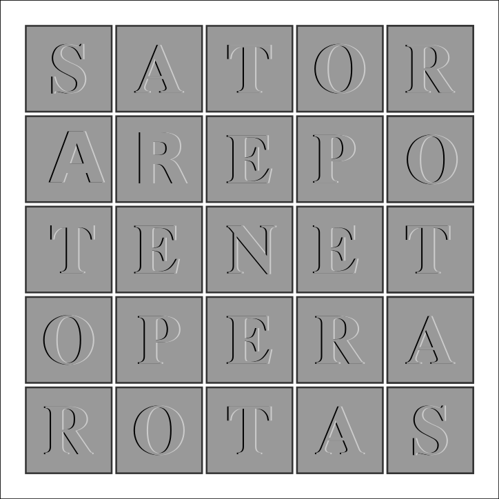 This is a square grid of letters, each letter being displayed in different orientations. The letters are arranged in such a way that they form the word "Satrorotas" when viewed from above. Each letter is displayed in various positions within the grid, creating an interesting visual effect. The arrangement of these letters creates a unique and intriguing pattern that captures attention.