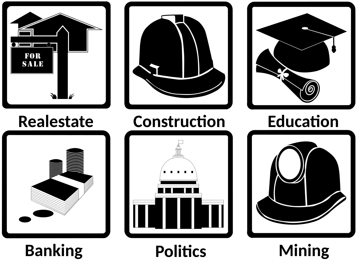 Tags: real estate, construction, education, banking, politics, mining, icons industry