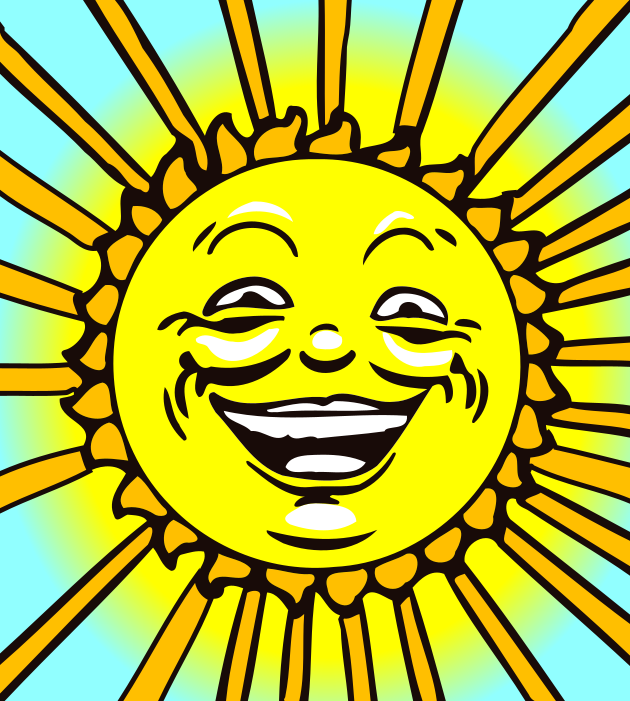 This features a large yellow sun with a smiling face, giving the impression of a happy and cheerful atmosphere. The sun is positioned in the center of the scene, surrounded by bright yellow rays that extend outwards from it. These rays create an illusion of depth and dimension, making the sun appear to be floating above the background. The overall effect is a vibrant and lively image that evokes feelings of warmth and positivity.