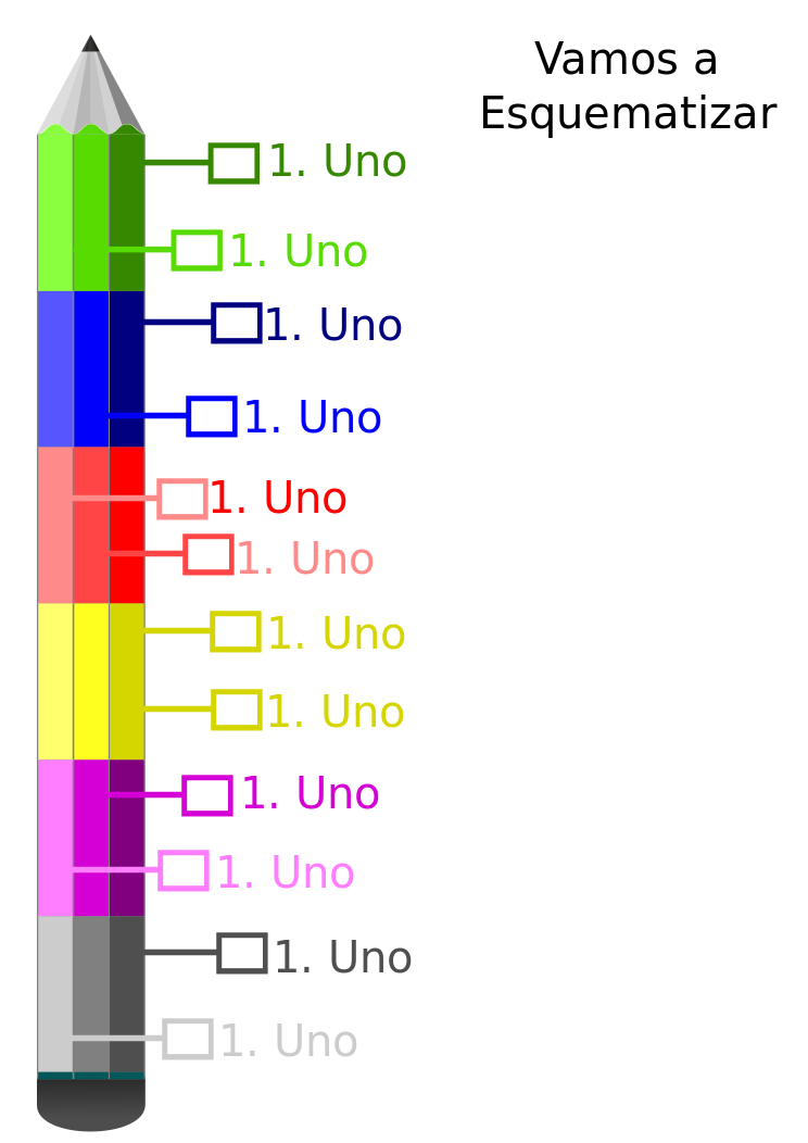 This displays a colorful pencil with various shades of colors lined up on it. The top part of the pencil is colored in bright hues, while the bottom part has darker shades. This unique design makes it easy to identify and choose the desired color for writing or drawing purposes. The image also includes a numbered list that corresponds with each color, making it even more convenient for users to select their preferred shade.