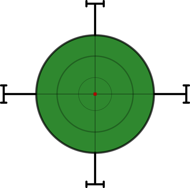 This features a green circle with a red dot in the center, which appears to be a target. This target is being measured by a device that has been set up to capture its dimensions accurately. The device is likely used for precision measurements and could be utilized in various industries such as manufacturing or engineering. The image showcases the importance of accurate measurements in ensuring quality control and meeting specific requirements.