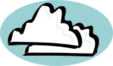 This features a hand-drawn illustration of clouds on an oval of blue sky. There are several white clouds in the drawing, each varying in size and shape. Some clouds are larger and more prominent, while others are smaller and less noticeable. The overall composition creates a sense of depth and dimension to the scene, with the clouds filling most of the image's space.