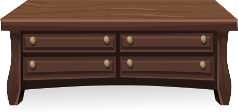 This features a wooden desk with four drawers. Each drawer has a golden handle, giving the desk an elegant appearance. The desk is large and spans across most of the image, providing ample space for storage or display purposes. The wood grain on the surface adds to its natural appeal, making it an attractive piece of furniture.