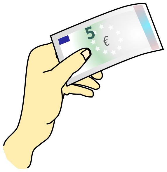 This features a hand holding up a five-euro bill, which is the currency of the European Union. The hand is positioned in such a way that it appears to be pointing at the money. The five-euro bill has several stars on it, indicating its value and origin. This scene could represent someone showing off their money or perhaps explaining the concept of currency exchange rates.