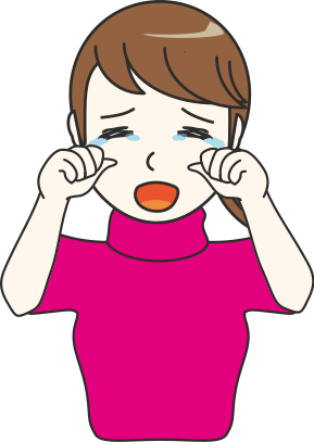 This features a cartoon woman with brown hair, wearing a pink sweater and holding her hands up to her face. She appears to be crying or making a funny face as she has her eyes closed. Her facial expression is quite dramatic, giving the impression that she's experiencing strong emotions. The cartoon woman seems to be the main focus of the image, with no other people or objects visible in the scene.
