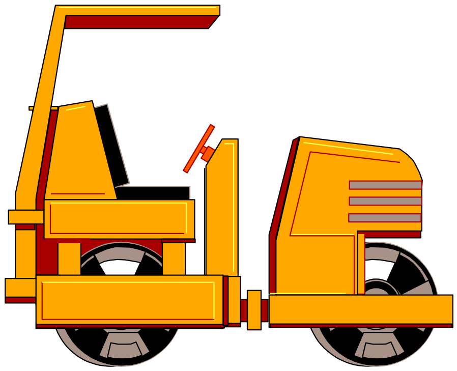 Tags: clipart, construction equipment, lineart, roller, silhouette, vector, tractor yellow