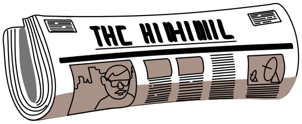 This is a colorful newspaper with the title "The Hippie" on top. It features an illustration of a man wearing sunglasses and a beard, possibly representing the counterculture movement. The newspaper appears to be from the 1960s, as suggested by its vintage design. The illustration is placed in various positions throughout the newspaper, with some appearing on the front page and others scattered across different sections of the paper.