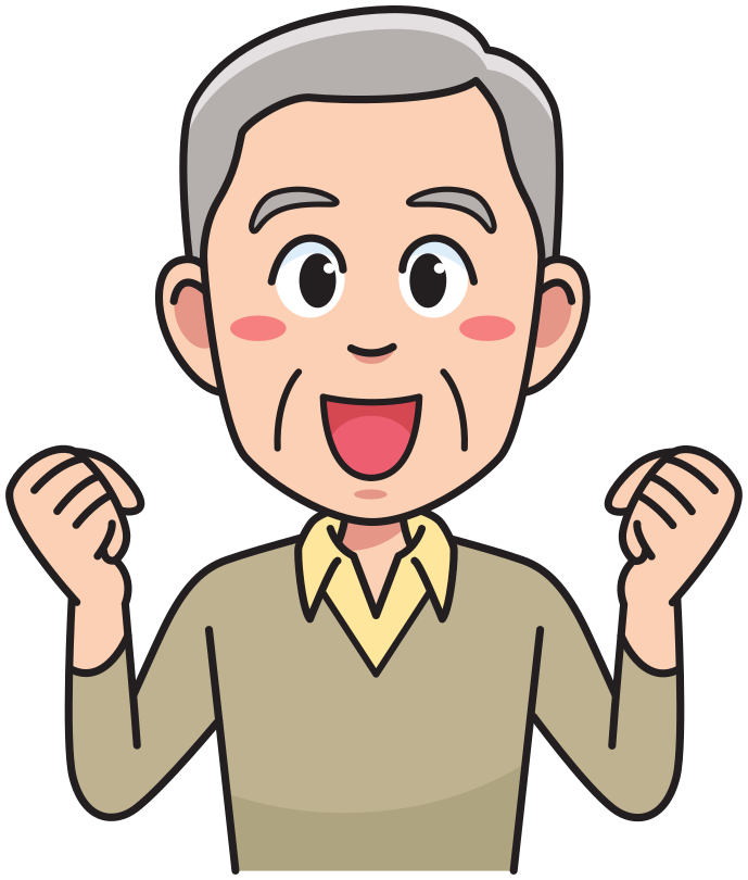 This features a cartoon man with a yellow shirt and brown hair, giving the impression of an older gentleman. He is wearing glasses and has a big smile on his face as he poses for the camera. His arms are outstretched, showing off his enthusiasm and excitement. This whimsical character could be used in various contexts such as advertising or entertainment, where a lighthearted and friendly appearance is desired.