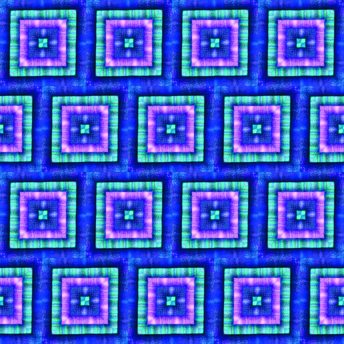 This features a large, intricate pattern of purple and blue squares. Each square is composed of smaller squares arranged in a grid-like formation. The overall design creates an eye-catching and visually appealing effect. The colors used are predominantly purple and blue, with some variations in shades and hues throughout the pattern. This unique design could be found on various surfaces such as wallpaper or fabric, adding a touch of elegance and sophistication to any space it adorns.