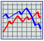 This displays a graph with two lines, one red and one blue. These lines are moving in opposite directions, indicating that they represent different trends or data sets. The red line is going upwards while the blue line is going downwards. This could be an indication of market fluctuations or other types of data analysis. The graph has a grid-like pattern behind it, which adds to its visual appeal and makes it easier to read.