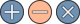 This features a close-up of three buttons, each with different functions. The left button has a plus sign on it, the middle button displays a minus sign, and the right button is an X sign. These buttons are arranged in a row, with the pink button being located in the center. The buttons appear to be part of a calculator or computer interface, as they are commonly used for mathematical operations.