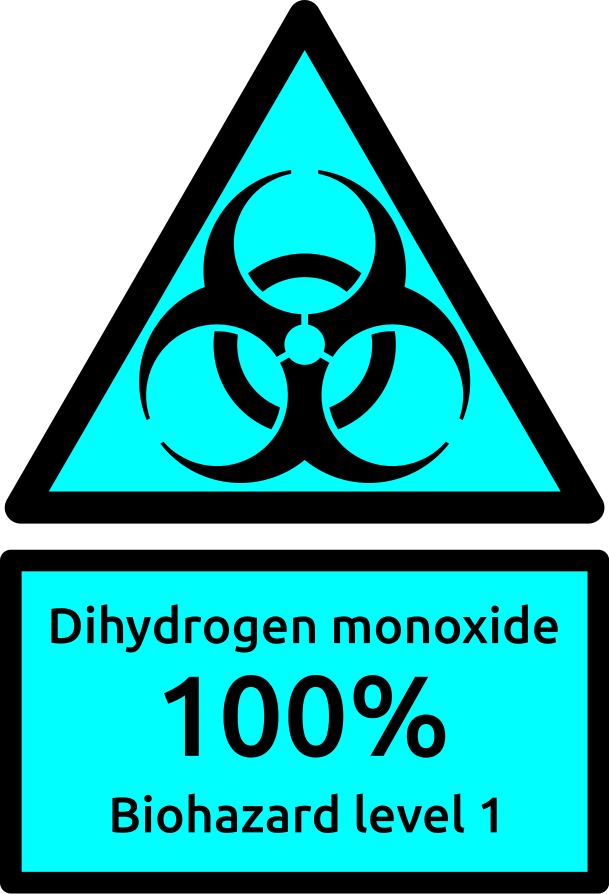 This is a completely free image Dihydrogen Monoxide 100% Biological Level 1 that you can download, post, and use for any purpose.