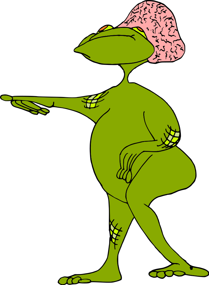 Tags: cartoon, frog, alien, big, brain, strange, look, get out, pointing, big brain, strange look, frog alien