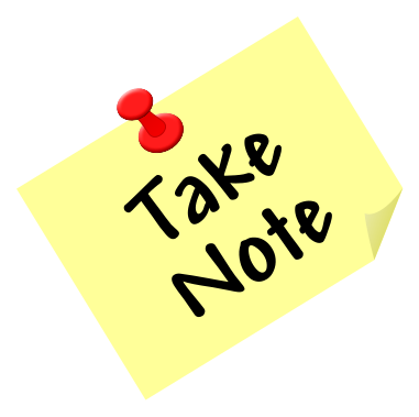 This features a yellow sticky note with the words "Take Note" written in black. A red push-pin is attached to the top of the note, making it easy for someone to attach it to a surface or remove it when needed. The sticky note appears to be placed on a table, ready for use as a reminder or a quick message.