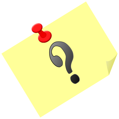 This features a yellow sticky note with a question mark symbol on it. The question mark is located in the center of the note, and there are two red push-pins attached to the top left corner of the note. This sticky note appears to be used for taking notes or reminders, as it has been placed on a surface where it can easily be seen and accessed by its user. The combination of the yellow background and the question mark symbol gives the impression that this is a tool for asking questions or seeking clarification about various topics.