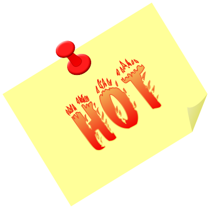 This features a yellow sticky note with the word "Hot" written in red. The lettering is bold and eye-catching, making it stand out on the yellow background. Above the word "Hot," there is a small red button or push pin that adds an interesting detail to the scene. This combination of text and visual elements creates a visually appealing and memorable image.
