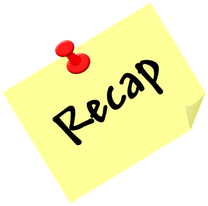 This features a yellow sticky note with the word "Recap" written on it. The note is attached to a surface, possibly a whiteboard or a wall, using a red push-pin. The sticky note serves as a reminder for someone to review and recap important information or events that have occurred in the past. This type of visual aid can be helpful for individuals who need to remember key points or details about a particular topic or situation.