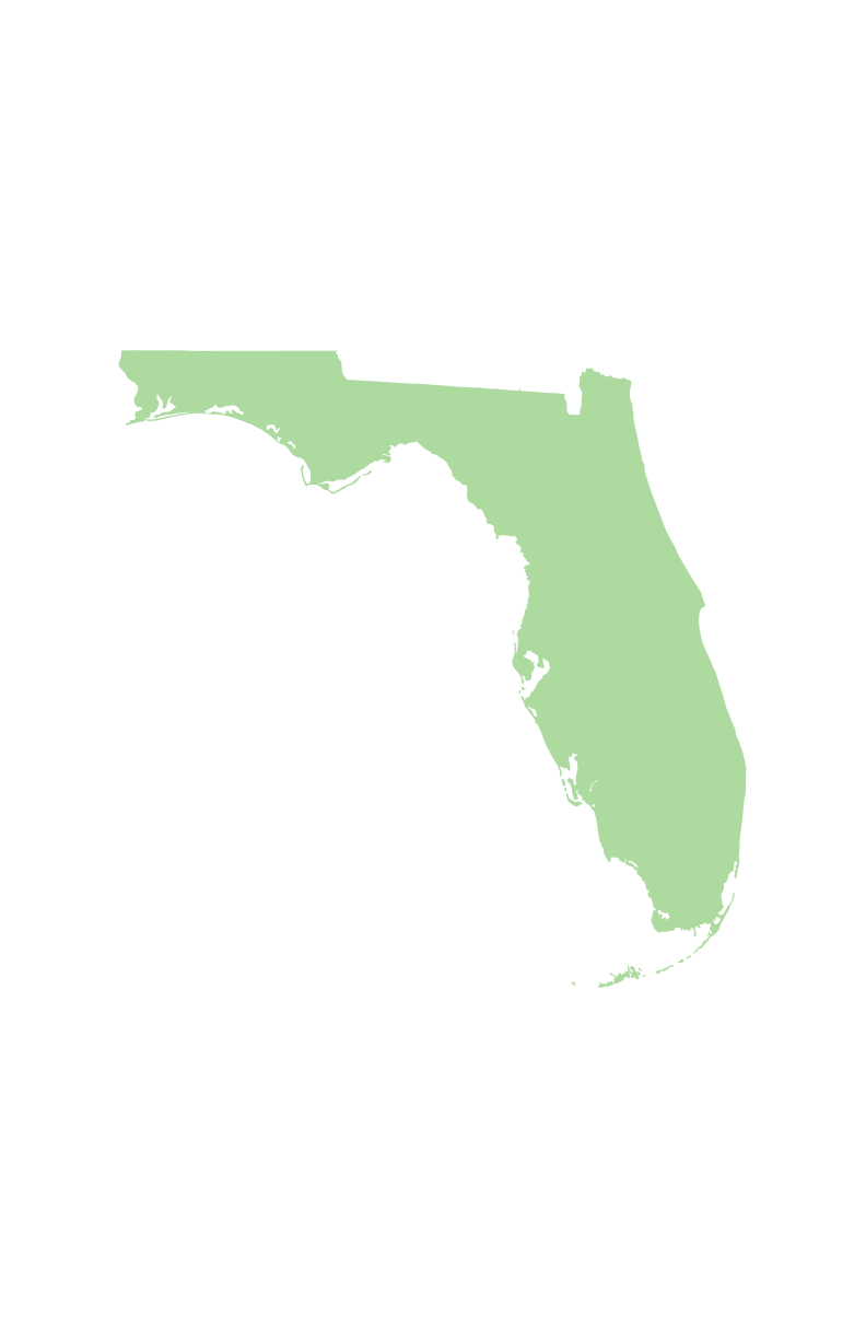 This features a large green map of the state of Florida, with its borders outlined in white. The map is placed on a white background, which creates a striking contrast between the vibrant colors of the map and the neutral tones of the background. The map covers most of the frame, showcasing the various counties that make up the state. This image could be used for educational purposes or as a decorative piece to celebrate Florida's unique geography.